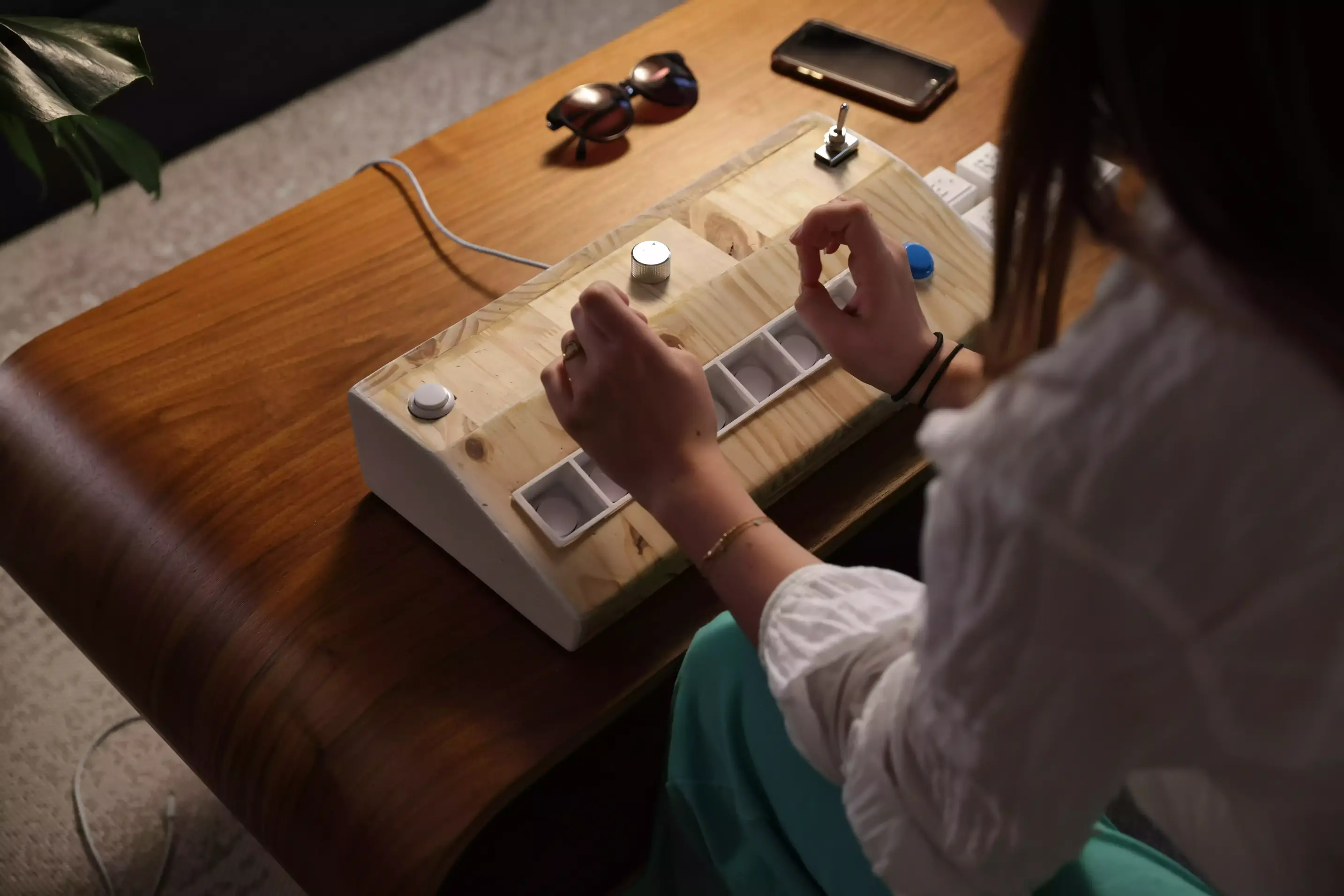 Dans un contexte où seulement 10% des personnes malvoyantes savent lire le braille, et où les formations pour l'apprendre sont très onéreuses et rares, nous avons eu l'idée d'un outil connecté permettant de s'initier au braille de chez sois. L'objectif est d'accompagner les personnes pour qu'elles apprennent à leur rythme, en explorant leurs autres sens tels que le tocuher et l'ouïe.